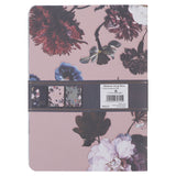 The first notebook in the set stands out with its midnight blue background that is adorned by blooming pink peonies. The sentiment is elegantly presented in large gold-foiled letters located in the lower right corner.