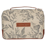 The Amazing Grace Natural Canvas Bible Cover is part of the Amazing Grace Natural Canvas Collection. This collection includes a journal, faux leather bookmark, Bible case, and canvas tote.