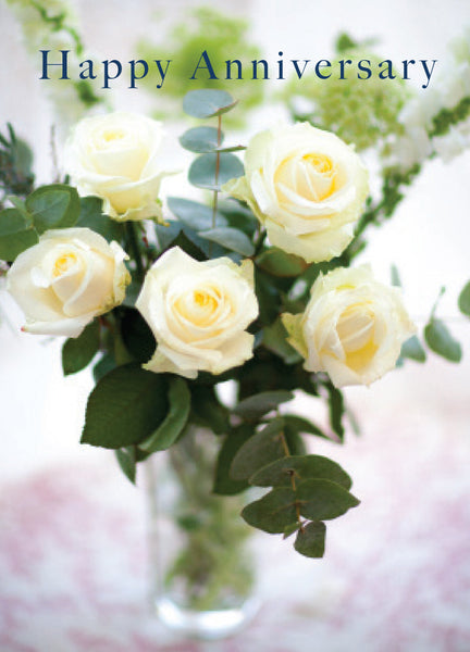 Anniversary Card - White Roses In Vase (Order in 6)