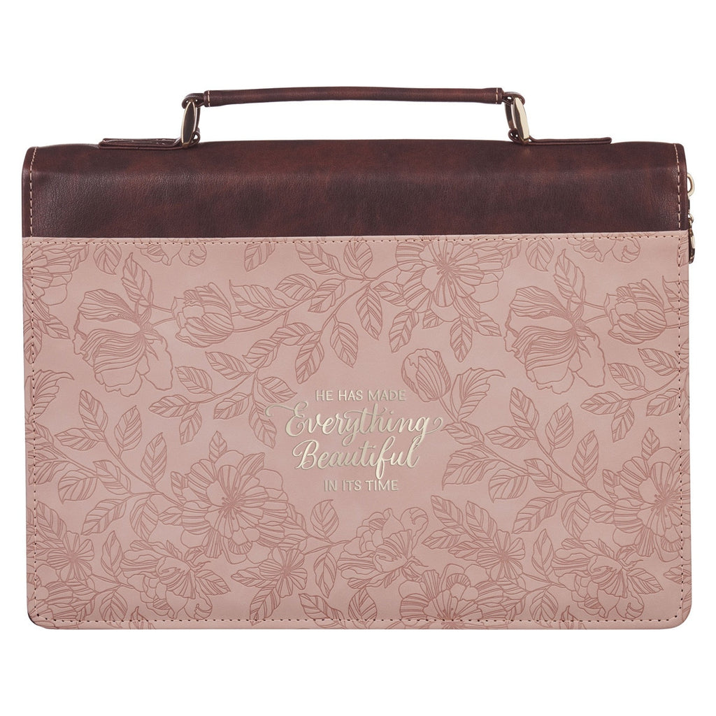 • Let the Everything Beautiful Blush Floral Faux Leather Fashion Bible Cover remind you to trust God's perfect timing even when life does not make sense. This elegant blush pink Bible carrier will encourage you to seek God's direction through His Word every time you use it.