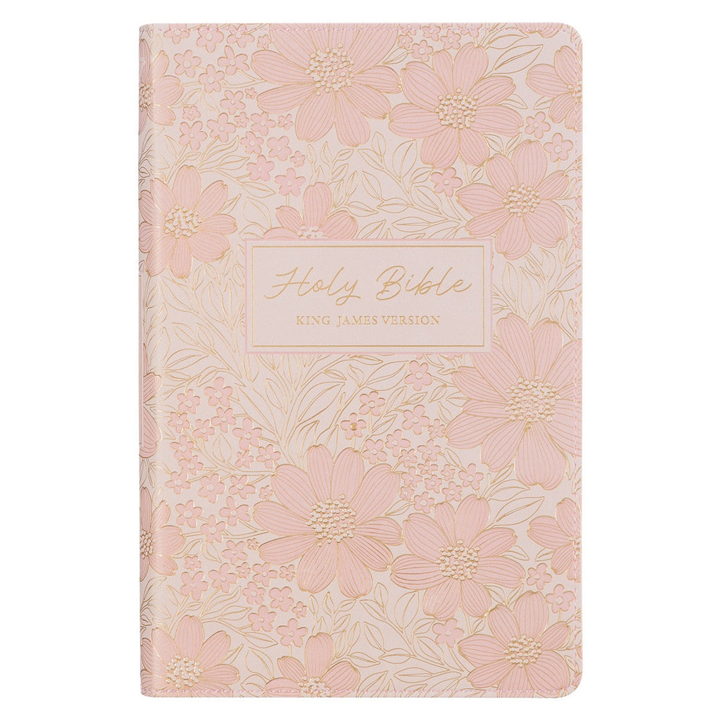 Pale Pink Floral Faux Leather King James Version Deluxe Gift Bible with Thumb Index