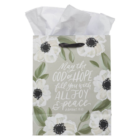God of Hope Gray Floral Medium Gift Bag - Romans 15:13