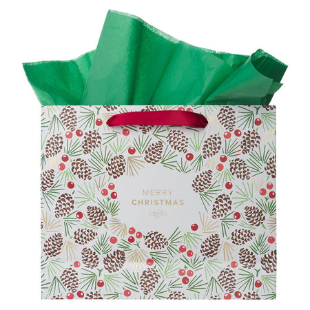 Merry Christmas Pinecone Large Landscape Gift Bag
