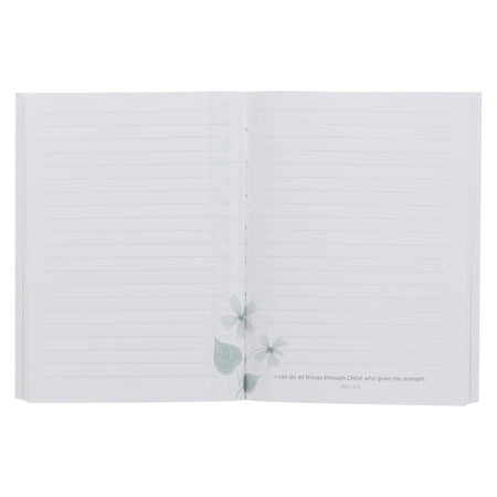 The Through Christ Green Floral Medium Notebook - Philippians 4:13